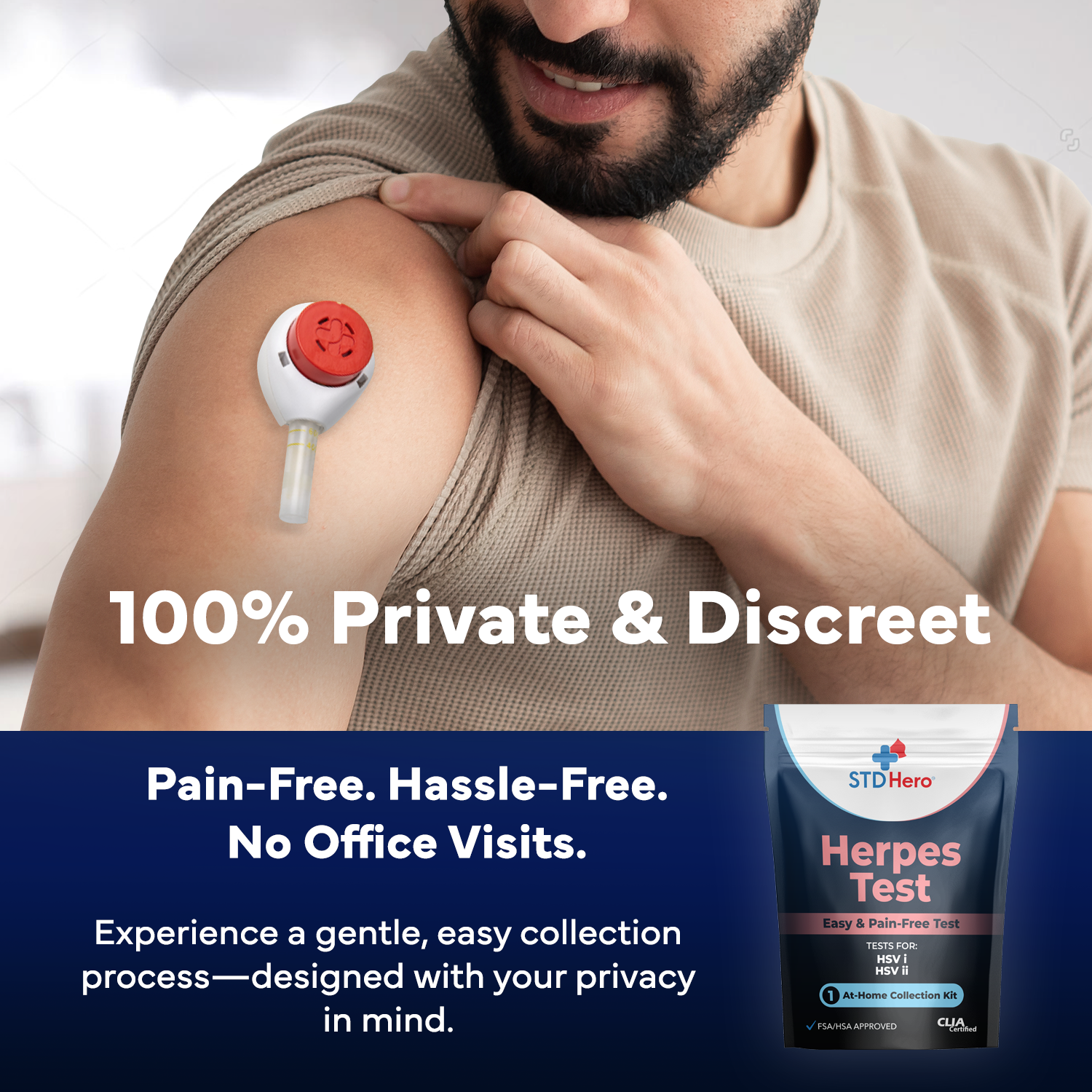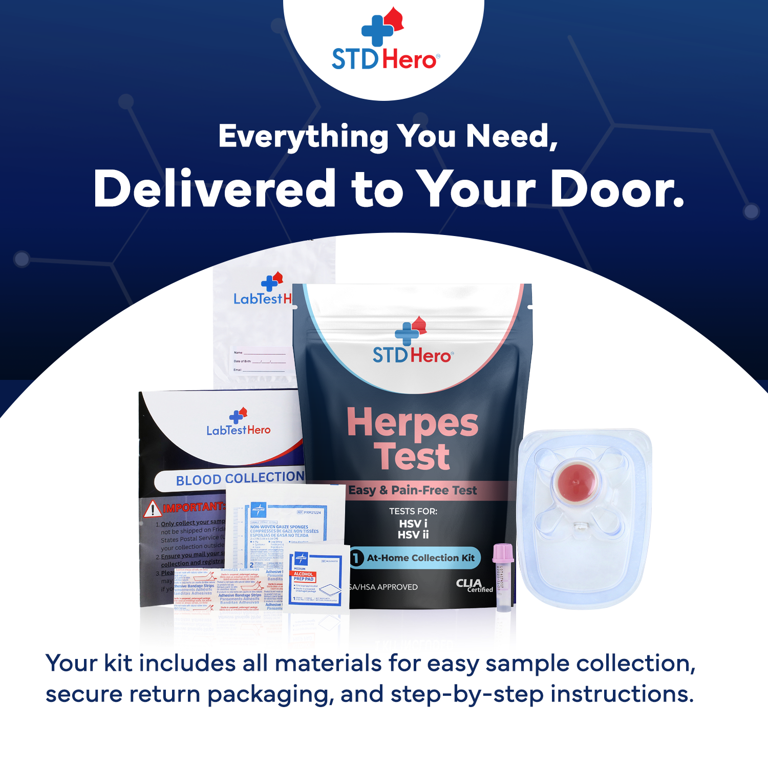 Our Herpes Test detects antibodies to Herpes Simplex Virus I and Herpes Simplex Virus II. These sexually transmitted infections are common and easily spread through unprotected sexual contact. Early detection and treatment of these infections is essential for maintaining sexual health and preventing further spread.